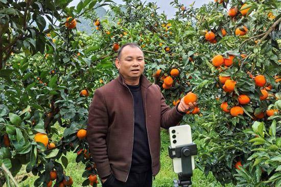 零卖户在果园中直播。黎社友摄