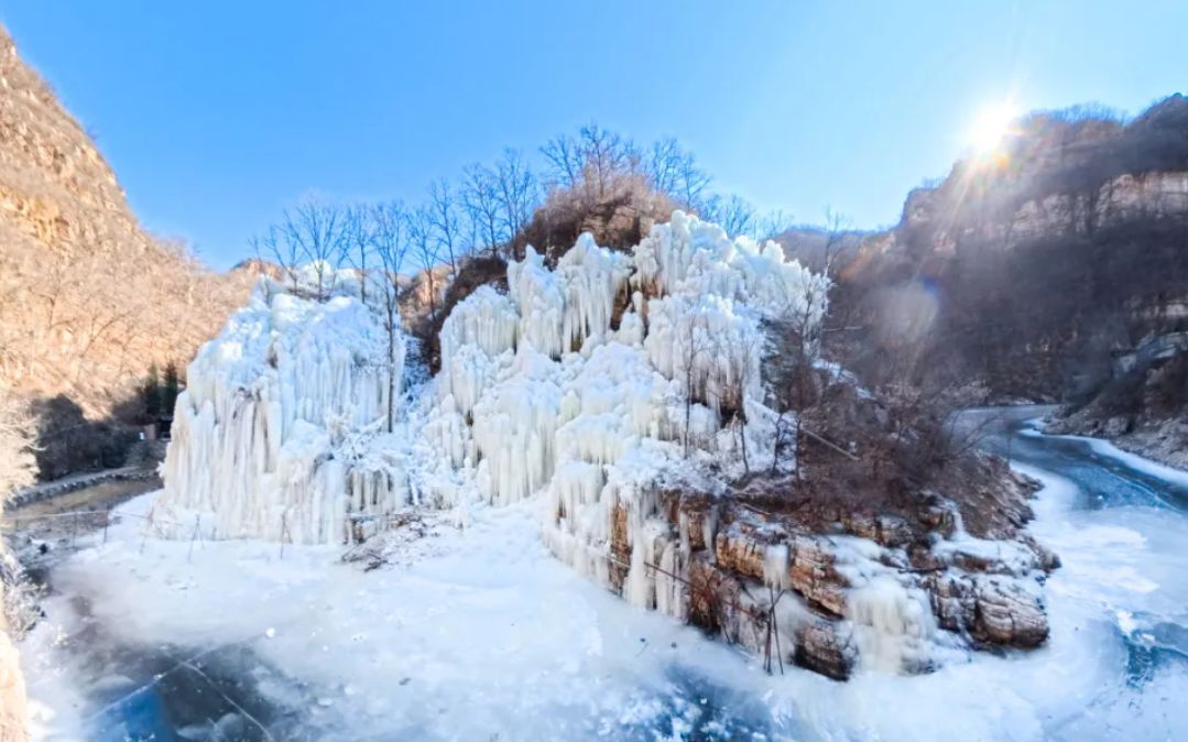 走进山谷,夙昔潺潺活水凝结成晶莹晶莹的冰瀑、冰挂,不管手机也曾相机,顺手一拍即是刷爆一又友圈的惊艳大片。除了打卡,这里还有冰上乐土,不错坐雪圈、骑冰上自行车。