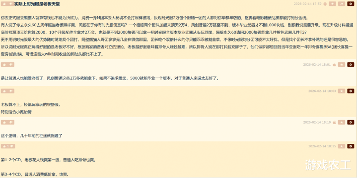 如何总结这句话呢?低廉。玩家们不错破耗较低的价钱去拿到魔兽宇宙时光服的BIS装,因此岂论是什么玩家其实王人不错体验到作念雇主的承诺。也有玩家总结说,前两个CD,时时玩家吃排骨就好了,毕竟雇主高价拿装备,此后头几个CD时时玩家快速耗尽,用较低的价钱拿装备,这么的话,团也不至于莫得东谈主耗尽。总结即是全球王人安靖。