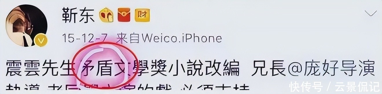 却将中国最具重量的文体奖项之一——“茅盾文体奖”,错写为“矛盾文体奖”,意外间改动了文体大师茅盾先生的姓名。