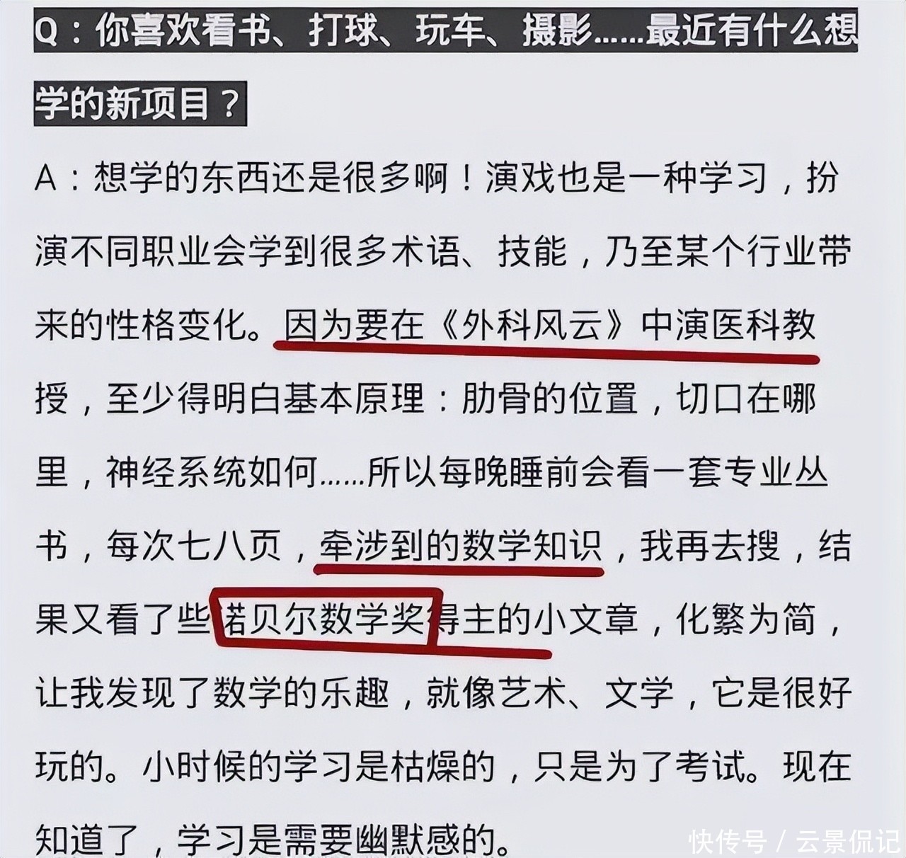 最广为东谈主知的,是他虚构的“诺贝尔数学奖”主张——宣称每晚研读该奖项得主撰写的科普著作。