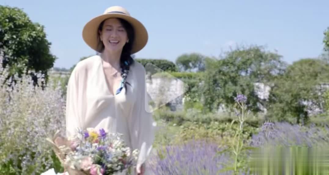 跟着镜头一排,她来到了种满花的园子里,她就像是花仙子不异散步在色调里。