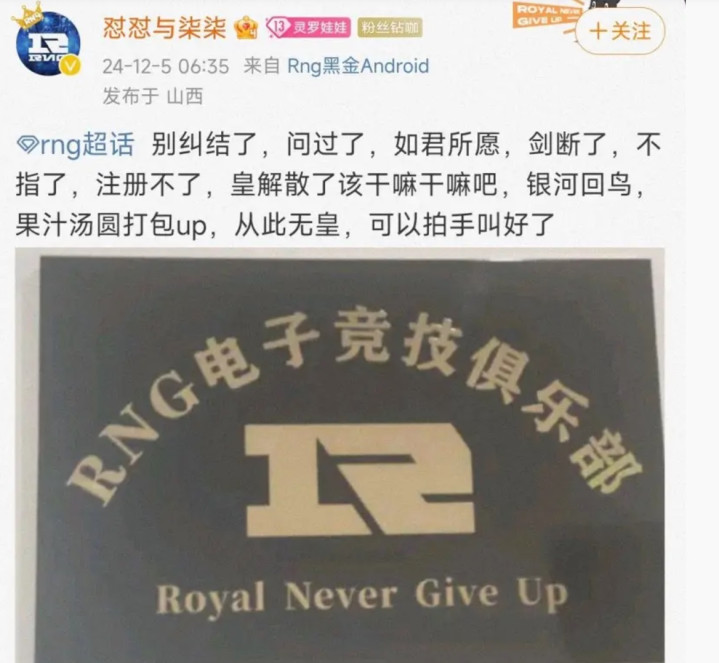 FPX退出定约的官宣在之前也曾公布了,但RNG这边却弥远莫得官宣。