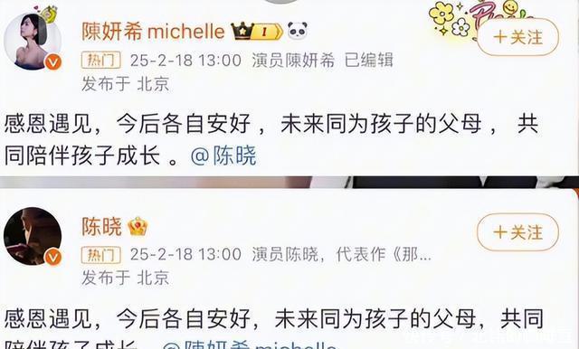 体面的通知仳离那刻,就早已划清了两东说念主的界限。 不知说念您对此有什么想法呢?迎接鄙人方驳斥区留住你的想法,可爱著述难忘点赞海涵咱们下期重逢。 [免责声明]著述的时刻、经过、图片均来自于收罗,著述旨在传播正能量,均无低俗等不良相通,请不雅众勿对号入座,并高涨到东说念主身挫折等方面。不雅众感性看待措施件,切勿留住主不雅臆断的坏心驳斥,互联网不是法外之地。本文若是实在性存在争议、事件版权或图片侵权问题,请实时筹办作家,咱们将给以删除 信息来源: 抖音百科:陈晓、陈妍希个东说念主府上 刚刚!陈晓、陈妍希官宣仳离,网友:真离了?我还难忘你俩头纱吻呢.红星新闻.[2025-02-18]. 迷雾戏院《尘封十三载》今晚开播,陈建斌陈晓师徒联袂追凶.本日头条.[2024-03-20]. 姐姐解解压第1期:李菲儿直言想中心位出说念陈妍希复兴“小龙女”被嘲争议.芒果TV.[2022-12-14]. 陈妍希将出演上戏院十周年大戏《水月镜花》坦言是赖声川剧迷.搜狐网.[2025-07-17].