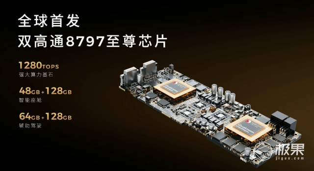 智能化方面,该车配备双高通骁龙8797芯片,总算力1280TOPS。配1颗激光雷达在内的28个感知硬件,守旧VLA提拔驾驶,包括车位到车位领航提拔、高速领航提拔和城市领航提拔。