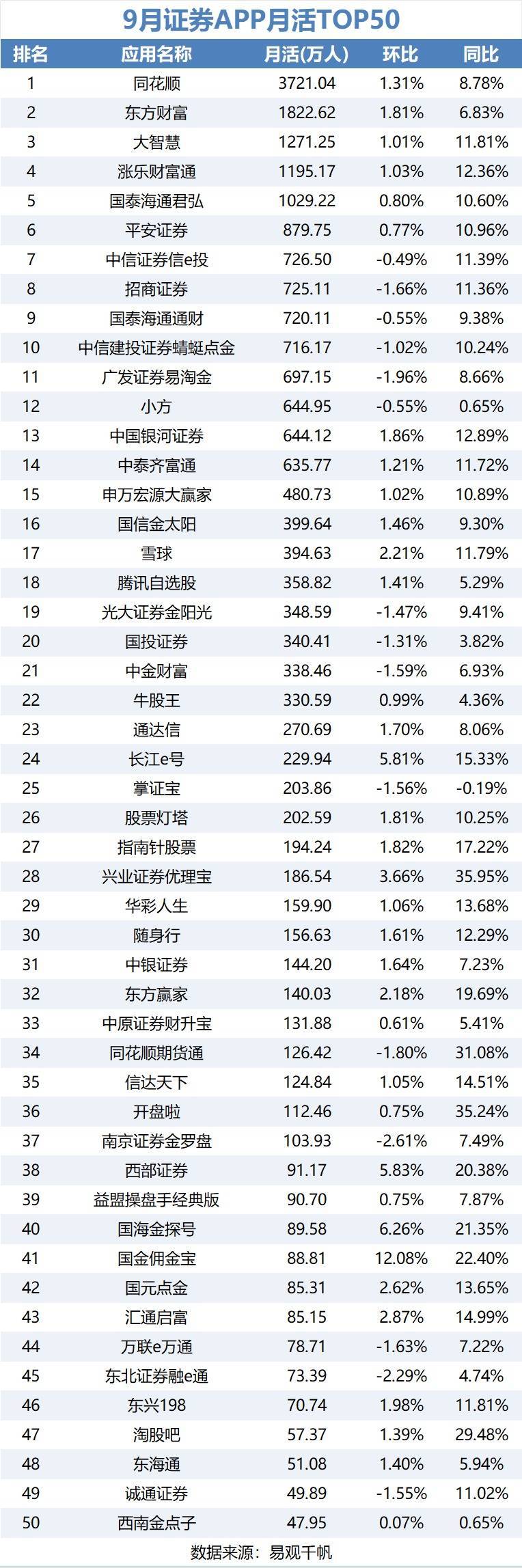 进入10月,A股市集出现短期波动。在此配景下,9月增速已有所回落的证券App,其月活增长态势能否保管,成为现时市集关注的焦点。