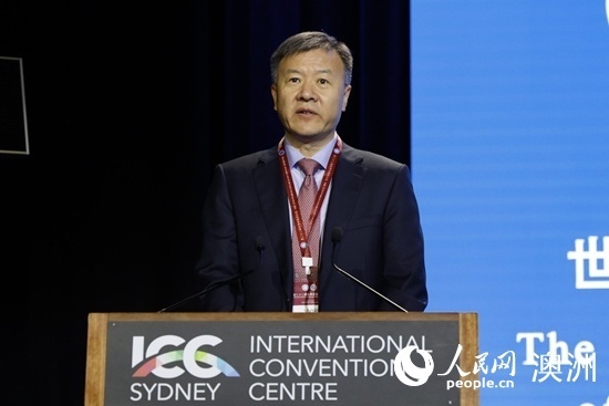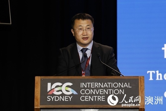 中国驻悉尼总领事王愚宣读中国驻澳大利亚大使肖千的贺信(图片由专揽方提供)