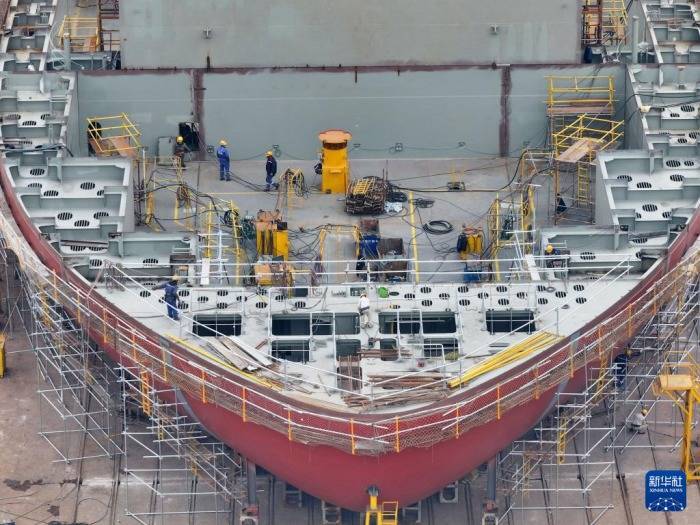 1月4日,在江苏省南京市一船坞内,工东说念主们抓紧完成船舶制造订单(无东说念主机像片)。